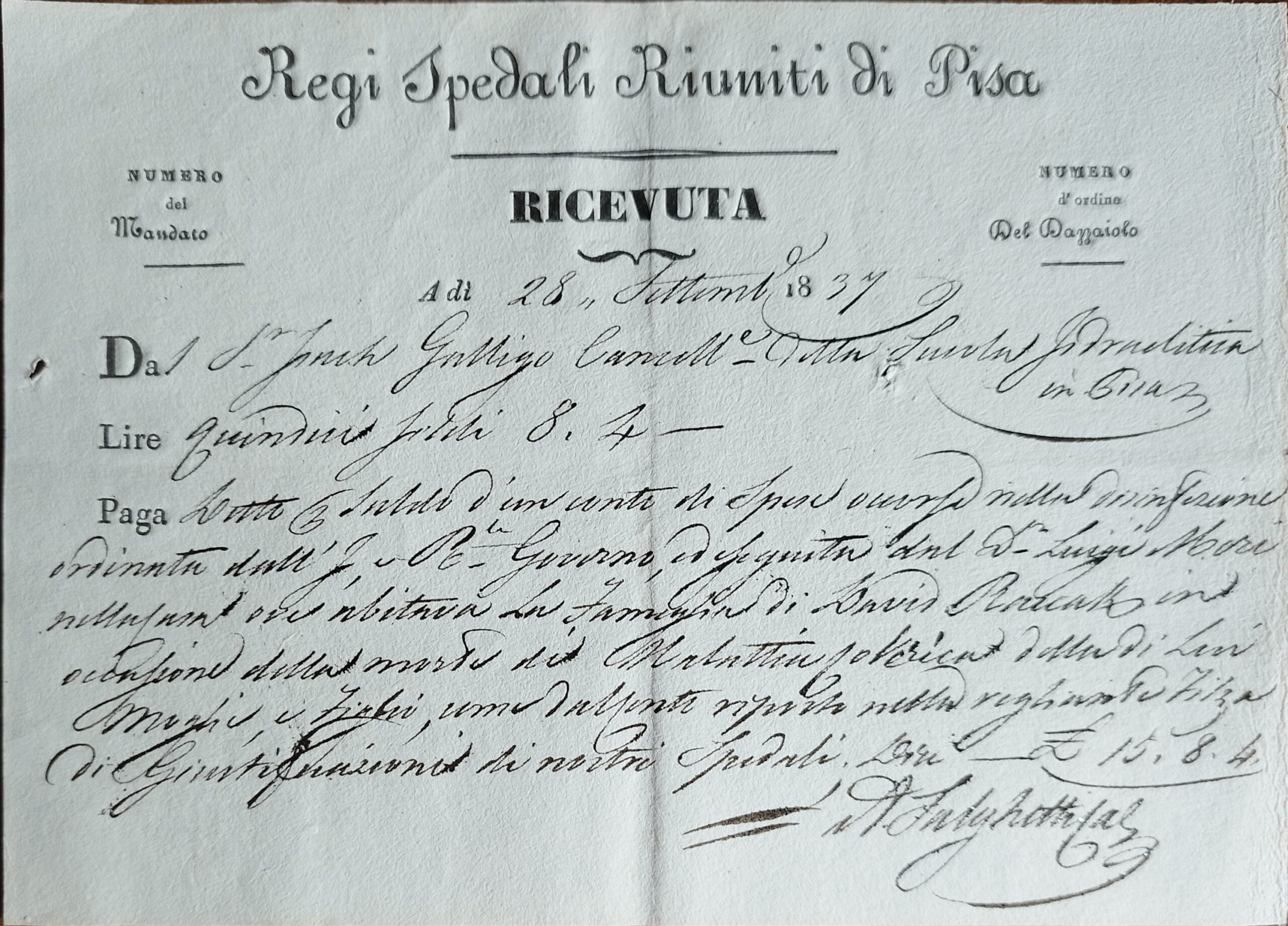 Lettera di Andrea Salghetti a Isach Galligo, 27 settembre 1833